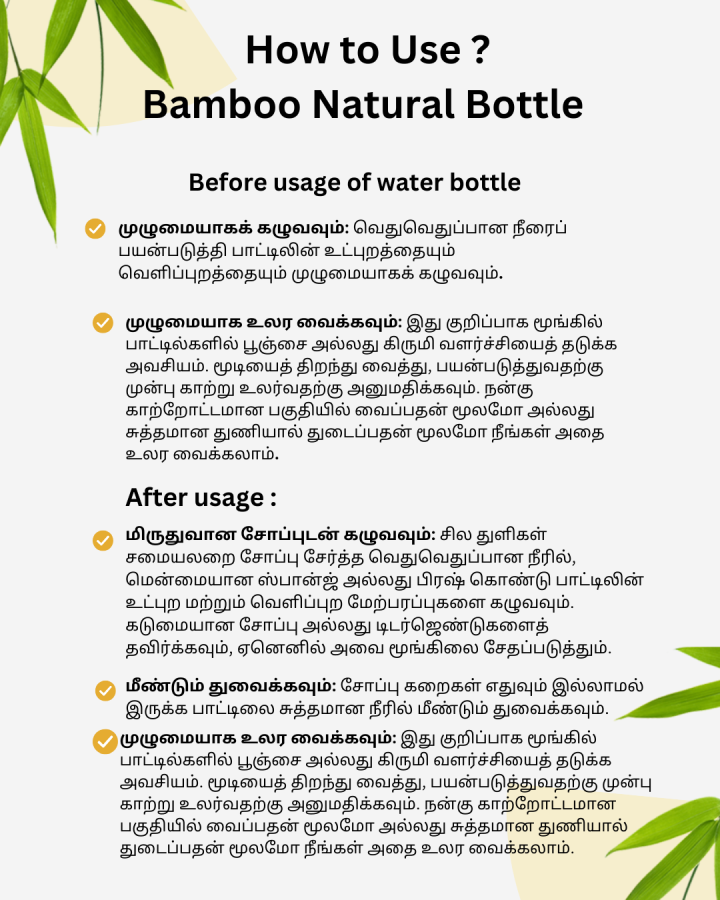 Our 500ml Bamboo Water Bottle is thoughtfully designed for those who value sustainability and style. Crafted from premium-quality natural bamboo with a stainless-steel inner lining, this bottle keeps your beverages at the perfect temperature while reducing plastic waste. Lightweight, durable, and easy to carry, it’s ideal for office, travel, gym, or outdoor adventures. The smooth bamboo finish gives it a natural charm — making it not just a bottle, but a statement of eco-conscious living.