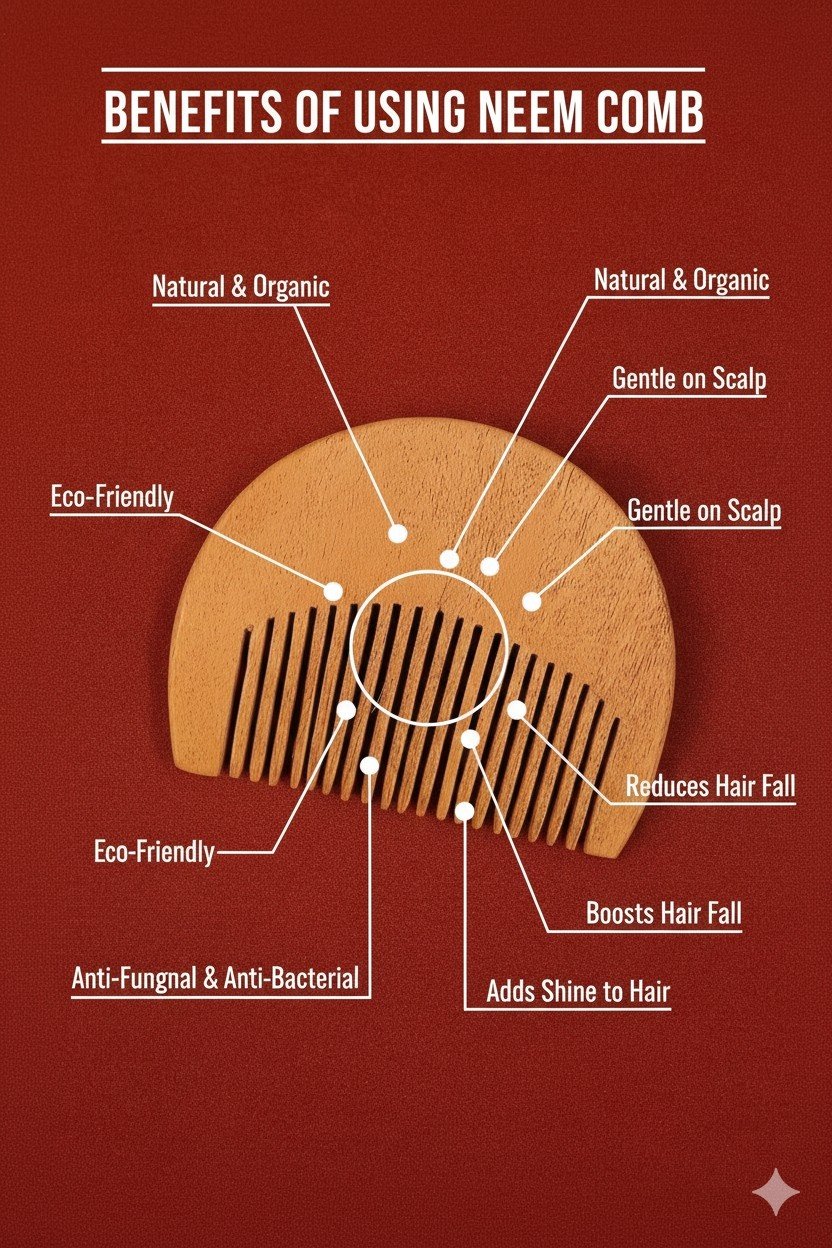 Our Beard Neem Comb is made from 100% natural neem wood, renowned for its antibacterial and antifungal properties. Specially crafted for men’s grooming, this comb helps reduce dandruff, itchiness, and beard frizz while stimulating blood circulation for stronger, healthier growth. Its smooth, rounded teeth glide effortlessly through your beard without snagging or static. A perfect eco-friendly grooming essential for the modern man who values both style and sustainability.
