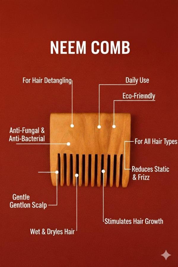 Our Pocket Neem Comb is handcrafted from 100% pure neem wood, known for its natural antibacterial and antifungal properties. Compact and travel-friendly, this comb gently massages the scalp, reduces dandruff, and promotes hair growth without causing static or hair breakage. Perfect for men and women, it’s a sustainable alternative to plastic combs — combining convenience, health, and eco-conscious design in one.