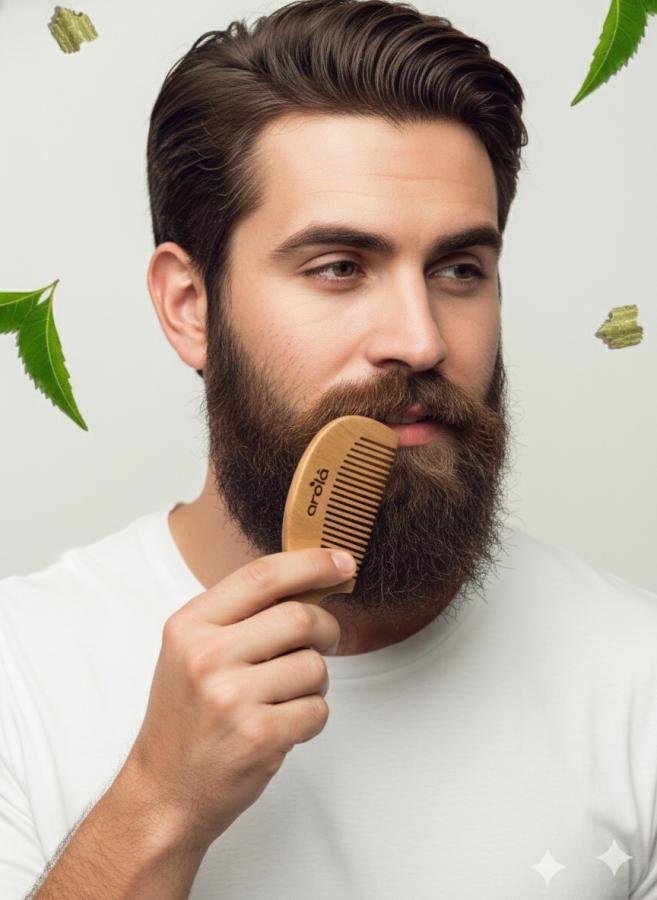 Our Beard Neem Comb is made from 100% natural neem wood, renowned for its antibacterial and antifungal properties. Specially crafted for men’s grooming, this comb helps reduce dandruff, itchiness, and beard frizz while stimulating blood circulation for stronger, healthier growth. Its smooth, rounded teeth glide effortlessly through your beard without snagging or static. A perfect eco-friendly grooming essential for the modern man who values both style and sustainability.